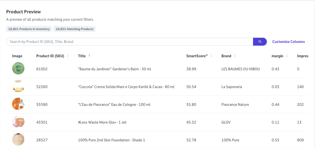 • Product Movement: Track how products shift between different campaigns based on their real-time performance and Smart Score.