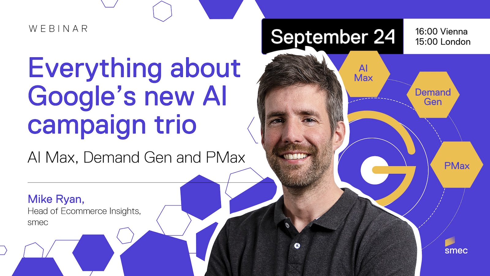 In this webinar, Mike Ryan, our Head of Ecommerce Insights, together with top-tier marketing experts Navah Hopkins and Greg Finn, will share data-backed facts, practical insights, and spicy opinions on the present and future of PMax for ecommerce.